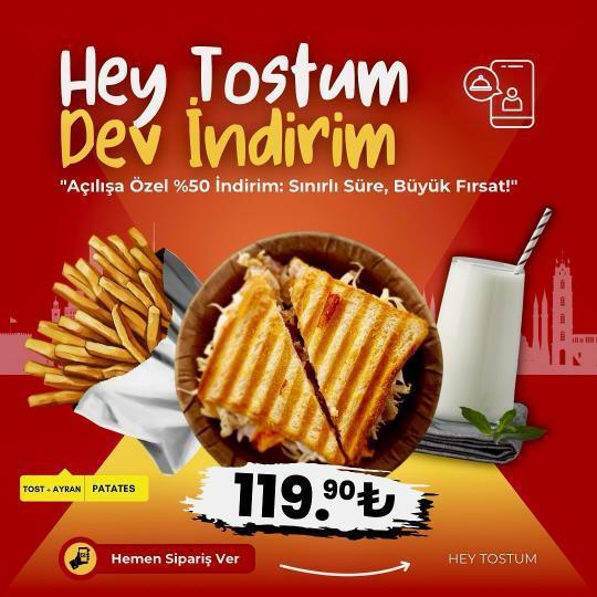 İstersen mekânda oturup keyifli bir tost molası ver, istersen 0554 134 08 16 numarasını arayarak siparişini ver. Hey Tost’um, kare tostunu sıcak ve özenli şekilde kapına getirir.